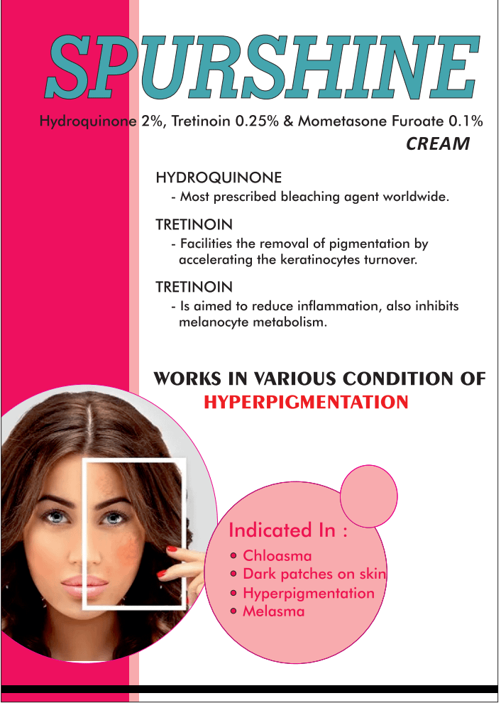 If you’re dealing with hyperpigmentation, Spurshine Cream offers a proven, effective solution. Its combination of Hydroquinone, Tretinoin, and Mometasone ensures fast, visible results, helping to reduce dark spots, even out skin tone, and prevent further pigmentation. With Spurshine, you can enjoy clear, radiant skin once again.